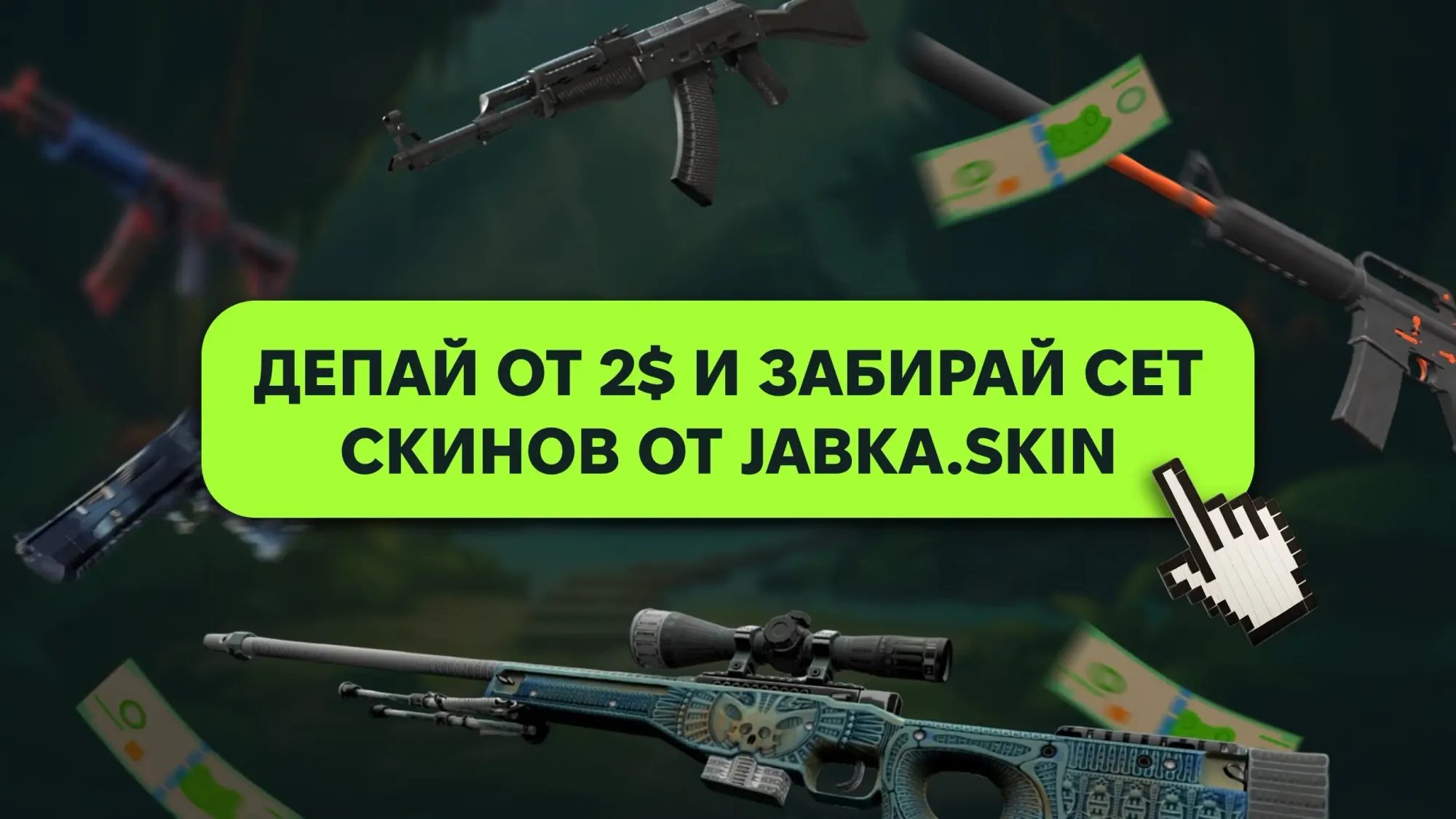Предлагаем вам посмотреть на доступные скины, которые можно прикупить в свой инвентарь всего за $20. Это шикарный вариант для каждого, кто не хочет сильно тратиться и с этим всегда поможет JABKASKIN. Смотри подборку и участвуй в розыгрыше целого набора прямо сейчас!