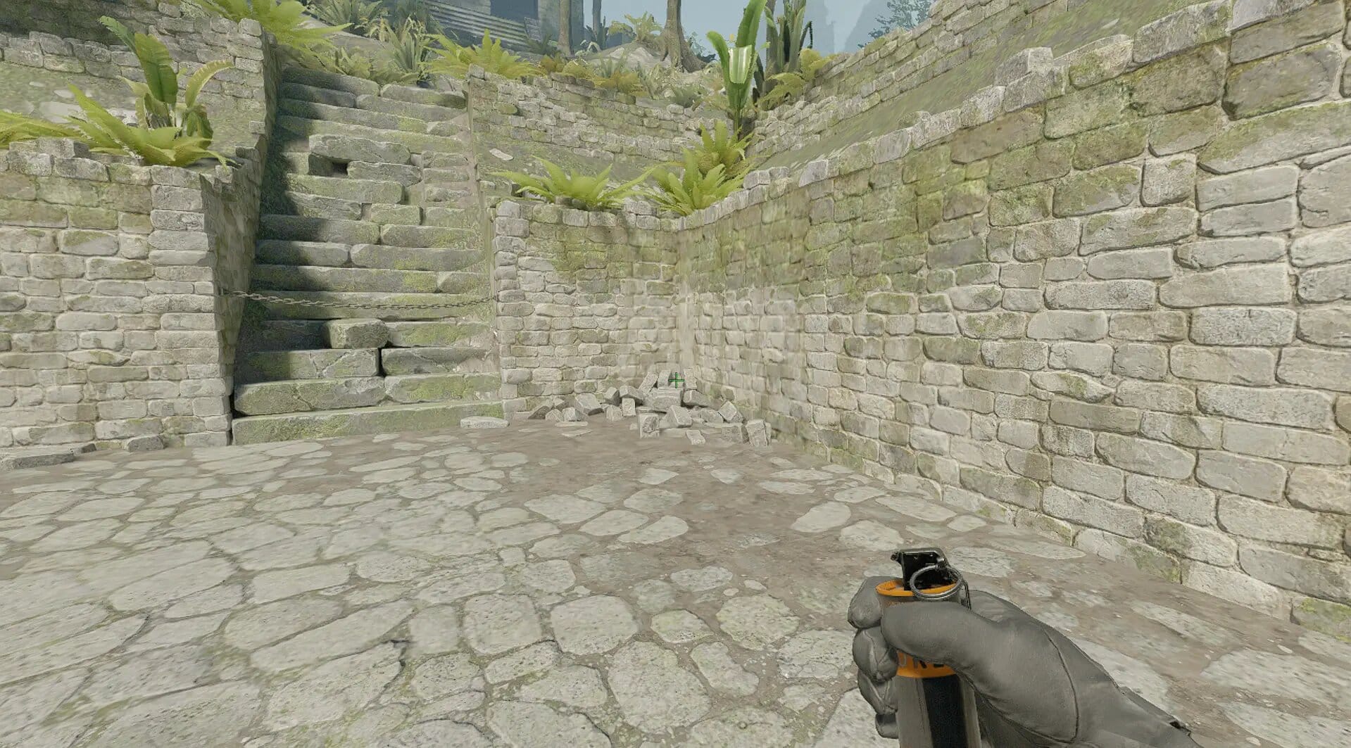 - Целимся в эту точку и бросаем смок с помощью jumpthrow + w