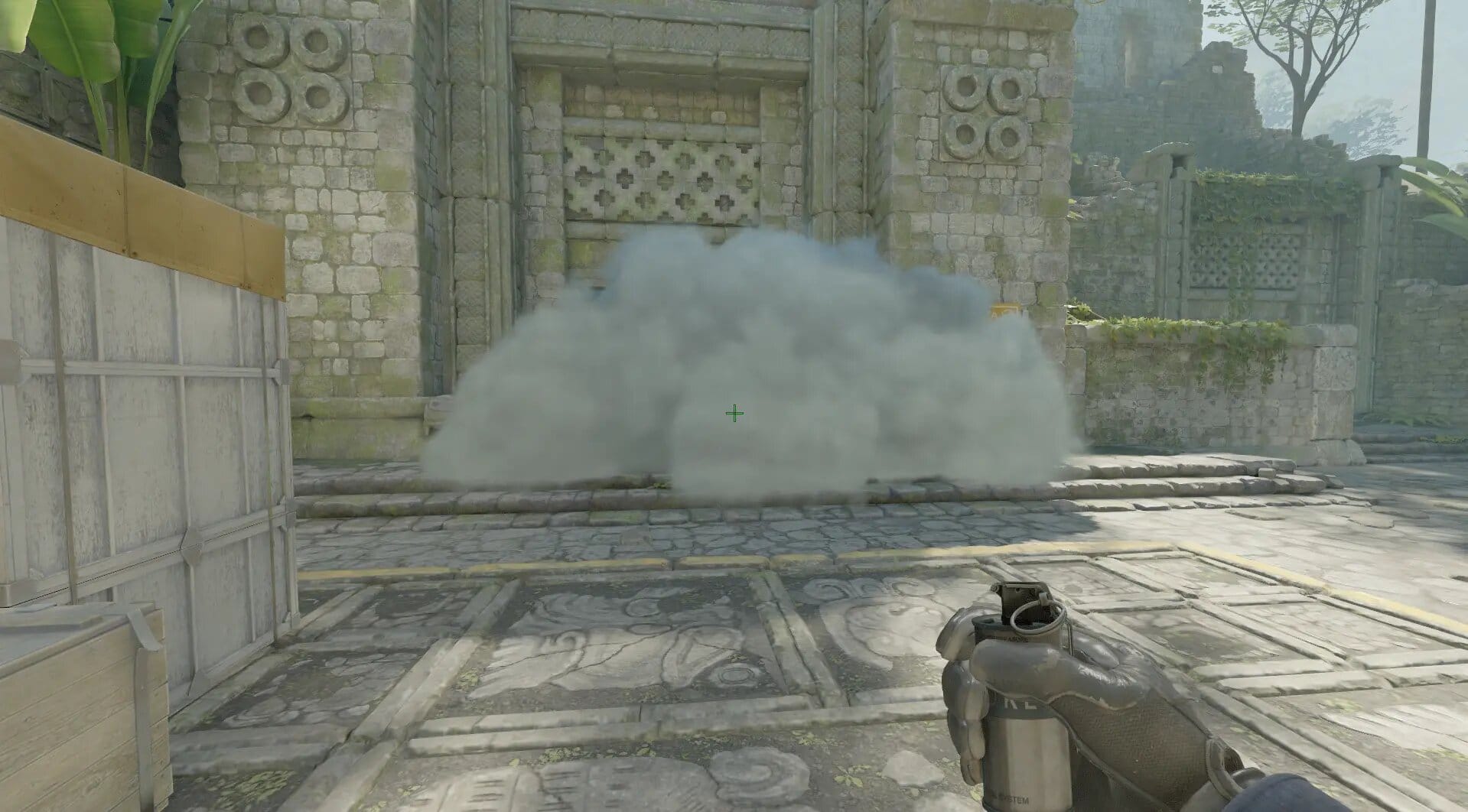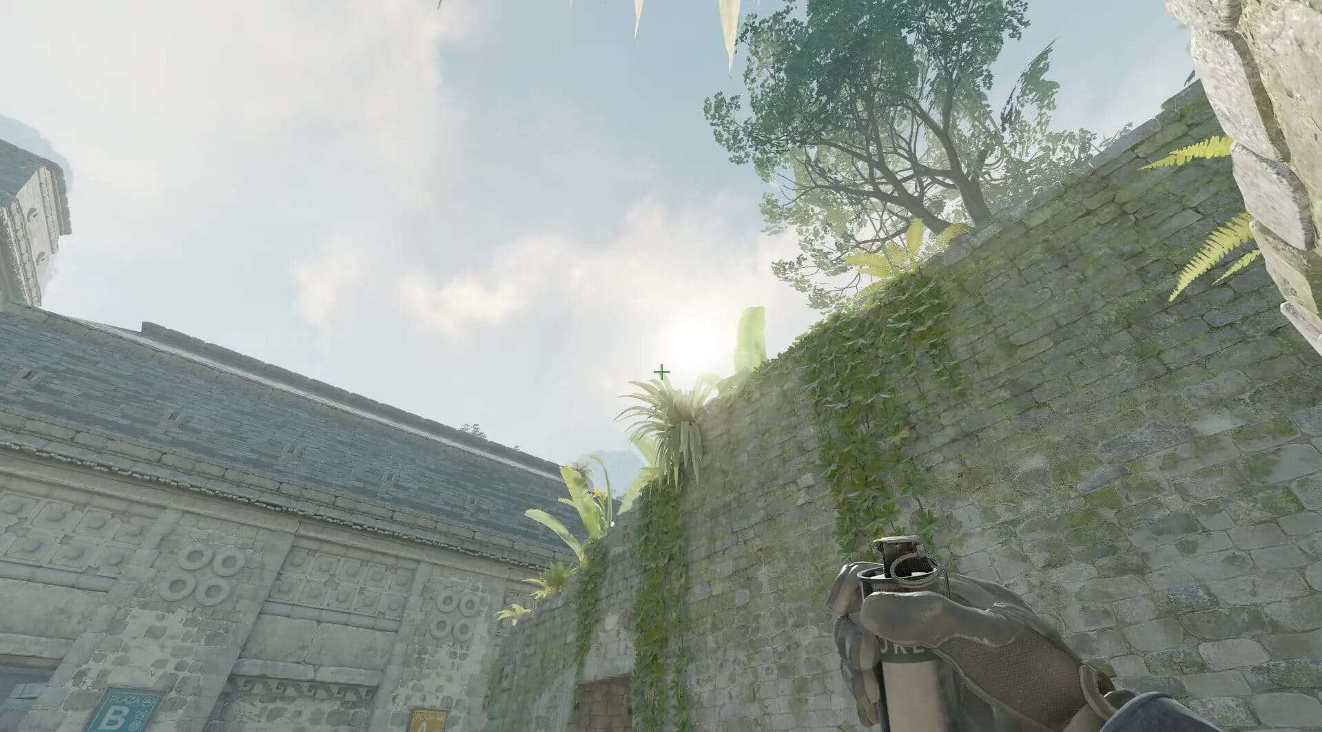 - Целимся чуть выше этого лепестка и бросаем смок с помощью jumpthrow