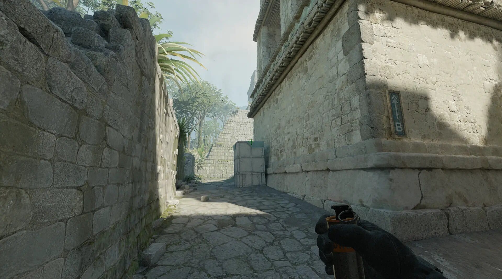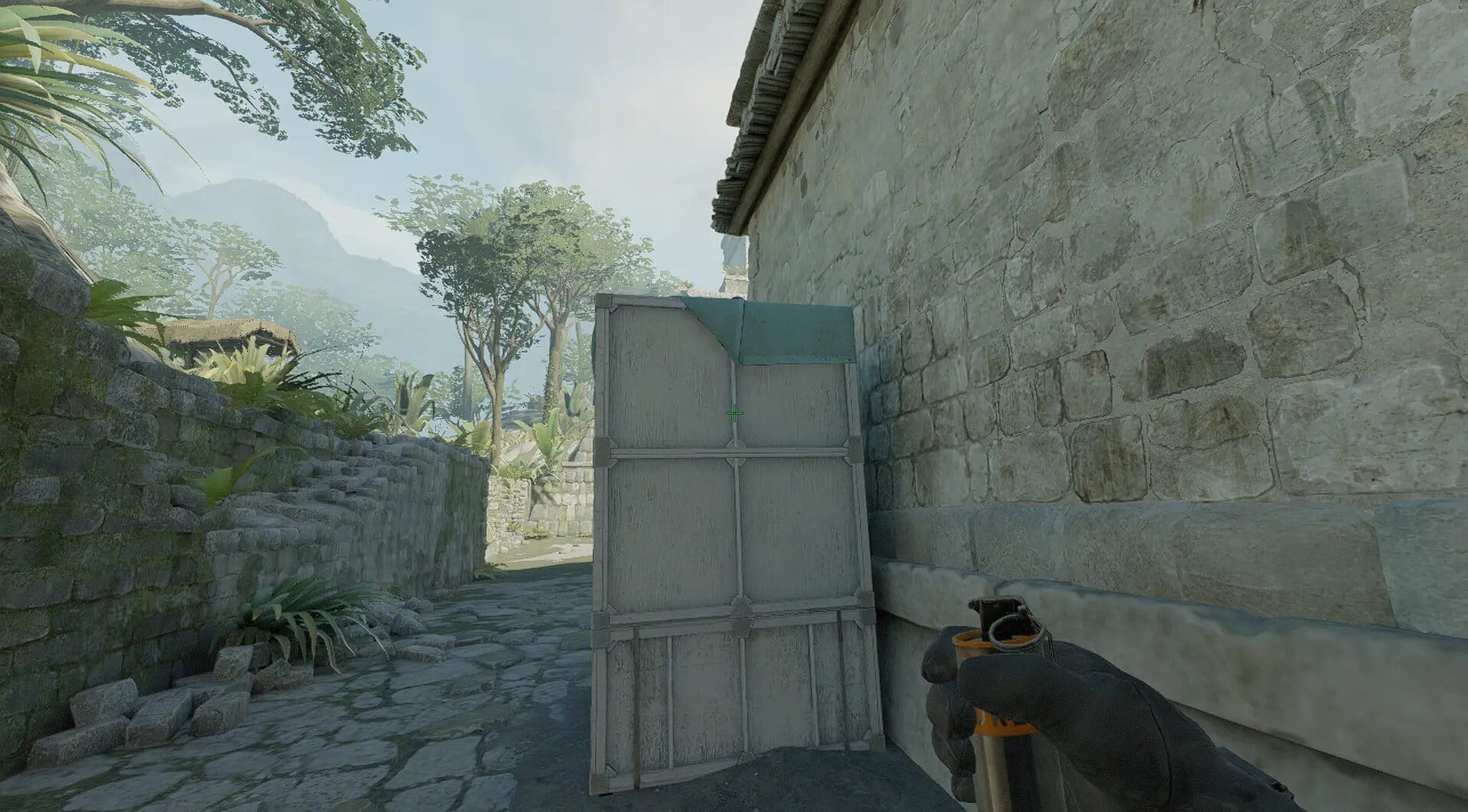 - Далее наводимся сверху по центру коробки и на бегу бросаем смок с помощью jumpthrow когда прицел будет как на фото ниже
