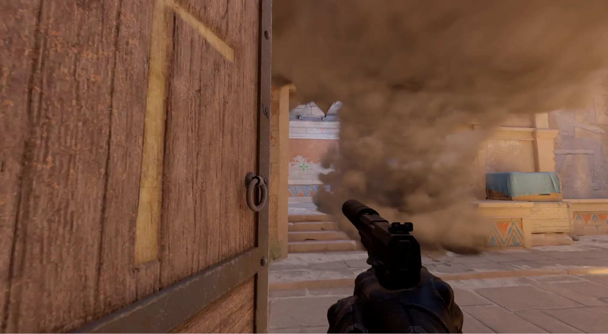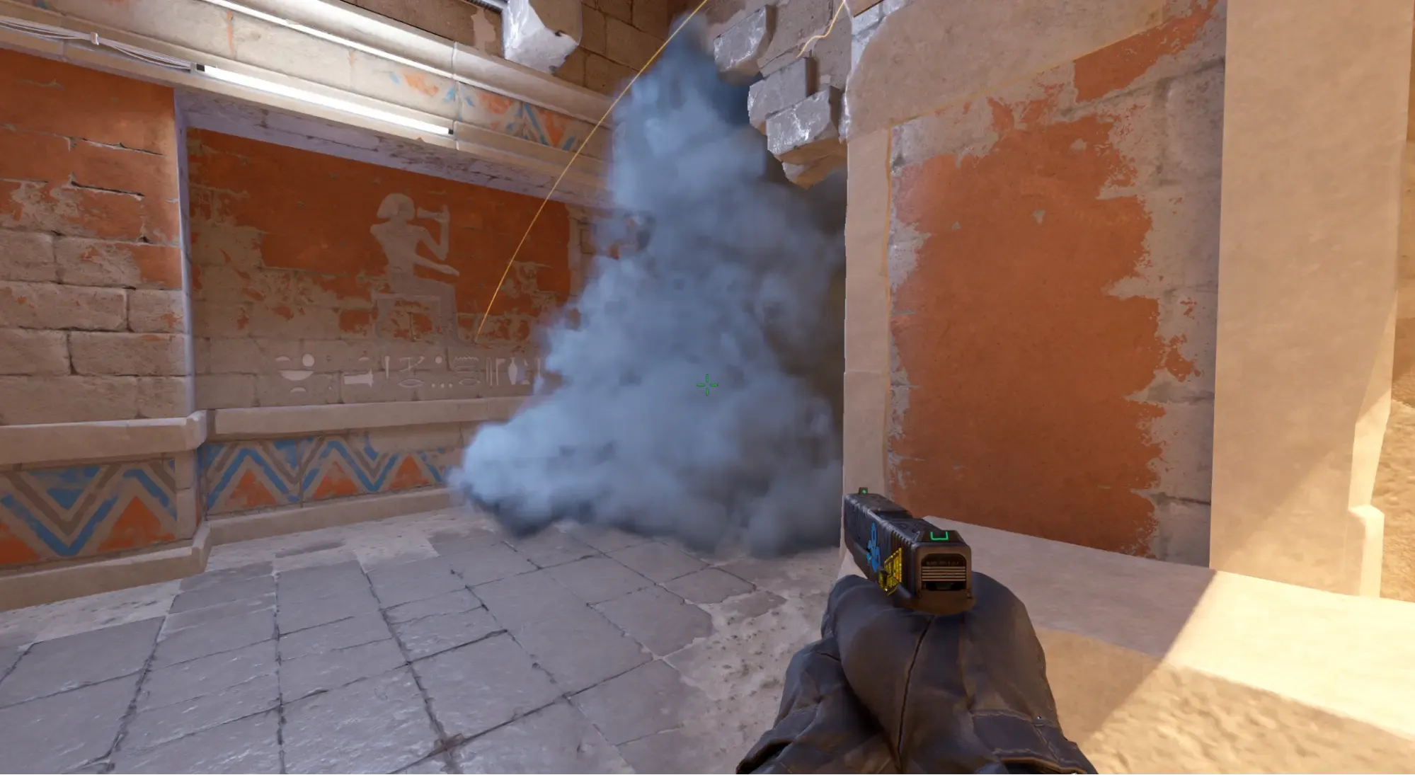 Противник не будет ожидать, что дым закрывает не полностью проход в окне, и не будет сфокусирован на нем.