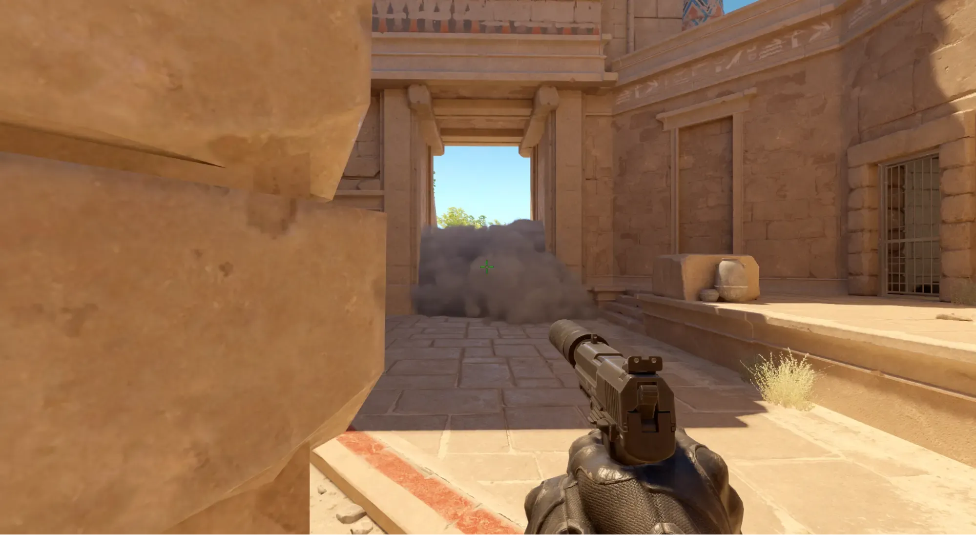 Смок перекрывает выход на плент B через руины, стороне атаки. Выполняется с угла на спавне спецназа с использованием jumpthrow. Для того, чтобы бросить смок правильно, нужно: