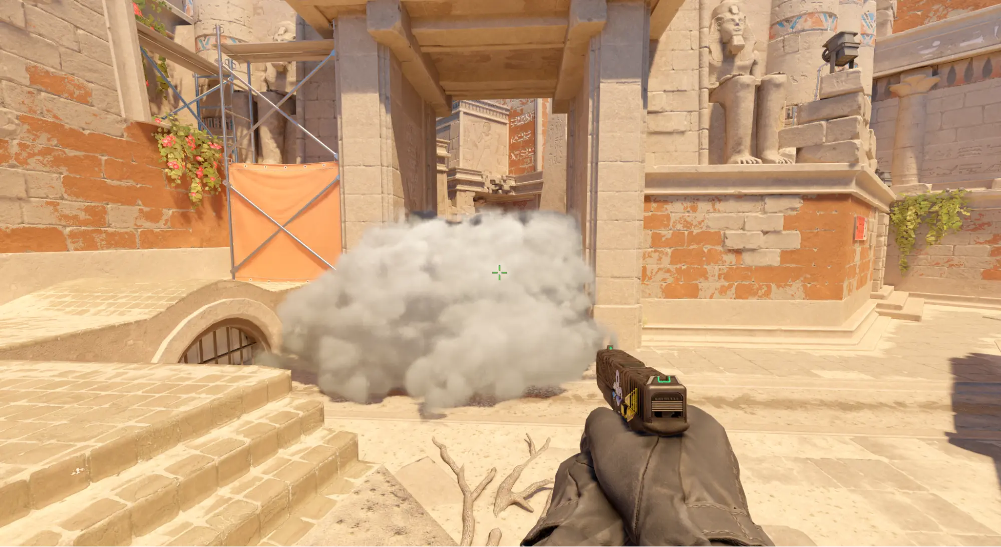 - Выполняем jumpthrow, и смок падает прямо на проход в B плент