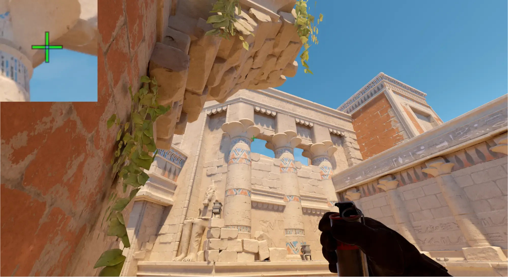 - Выполнить бросок с помощью ЛКМ и смок падает возле колонны