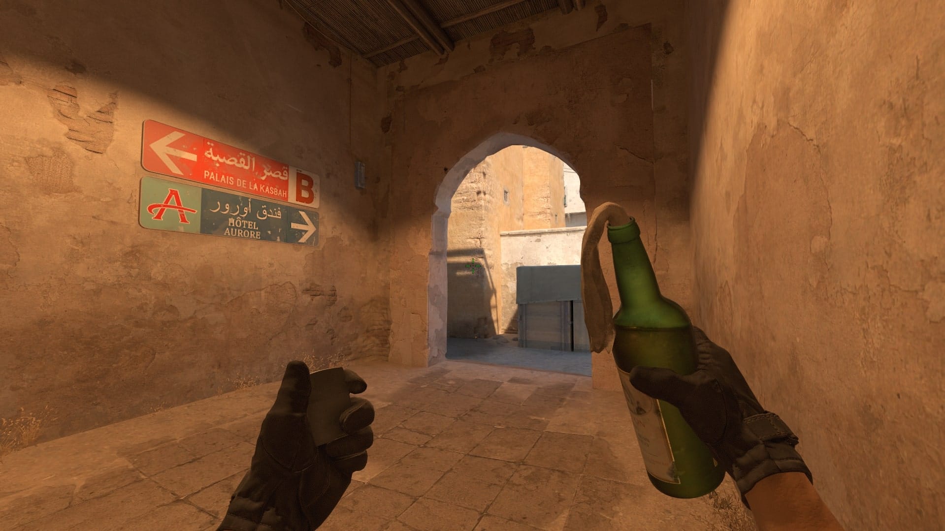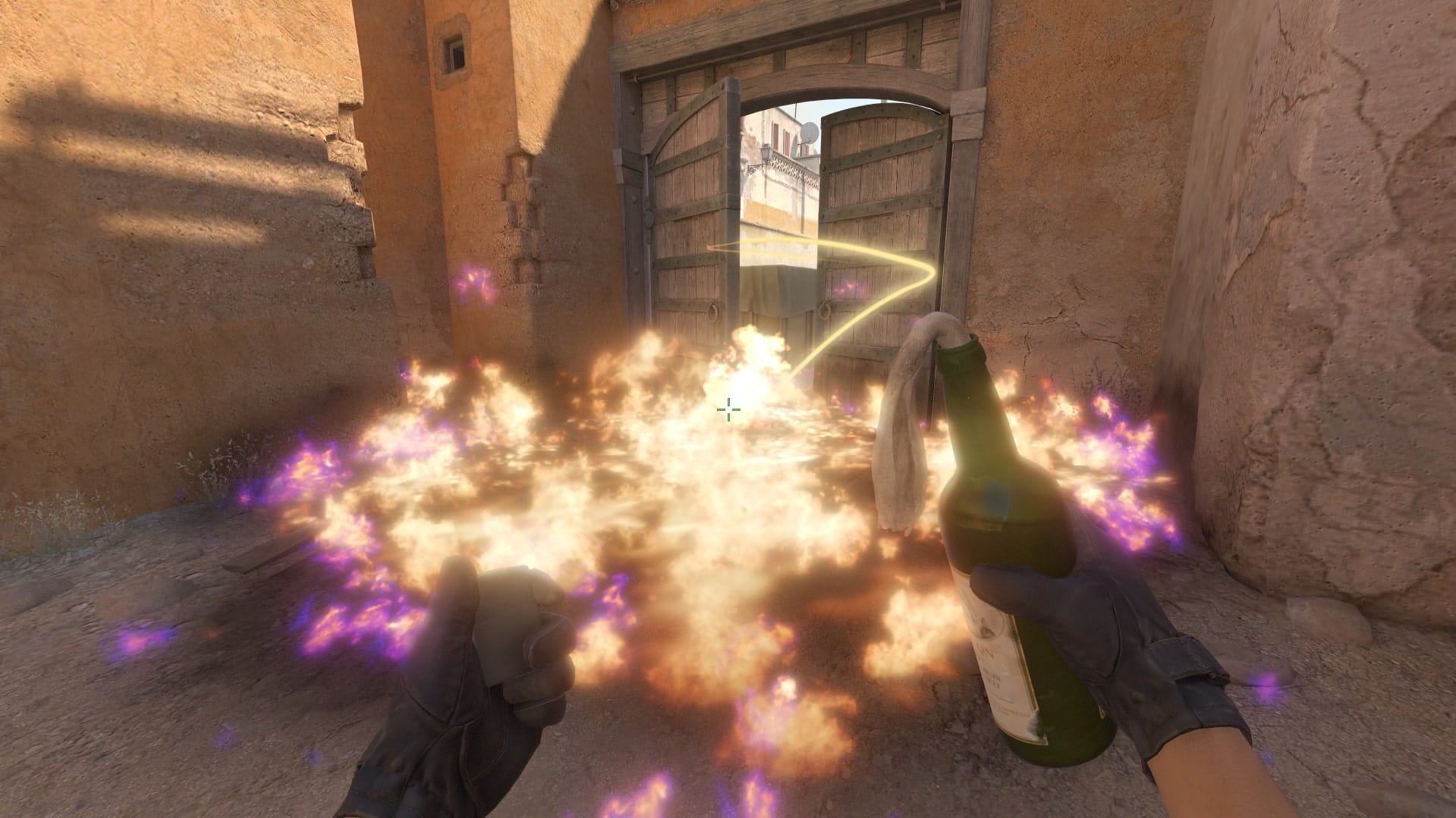 - Далее прицелиться как показано на фото и бросить молотов на бегу при выходе с тоннеля