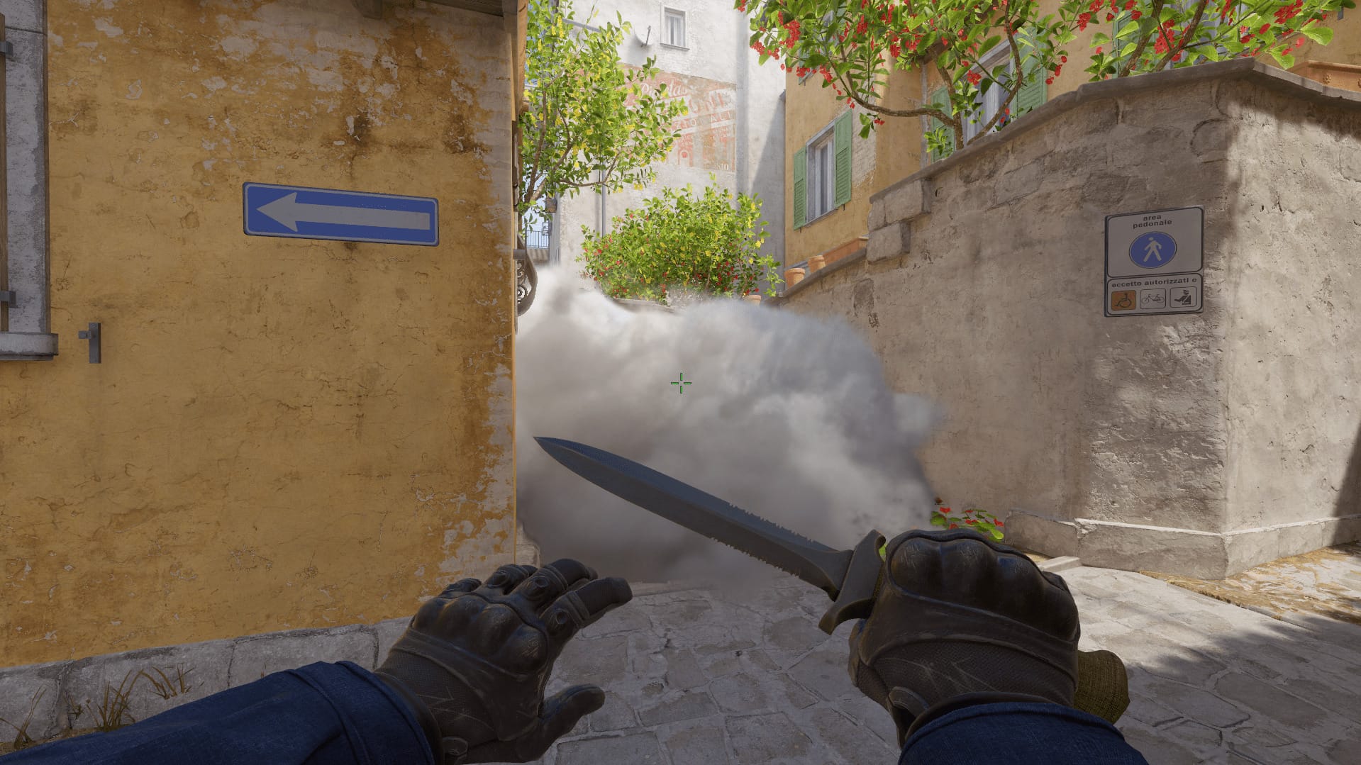 - Целимся на маленькое белое пятнышко и кидаем смок на бегу с jumpthrow