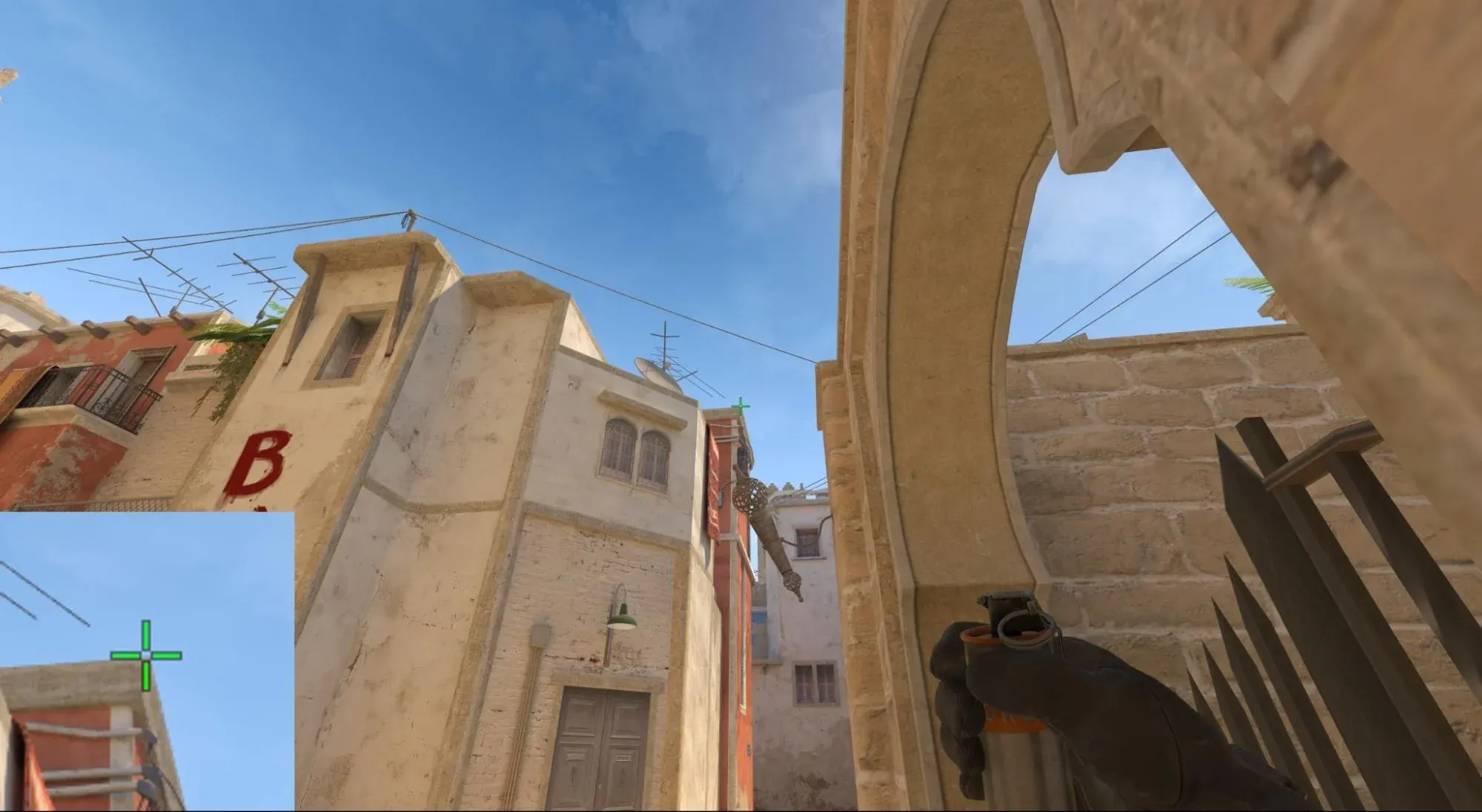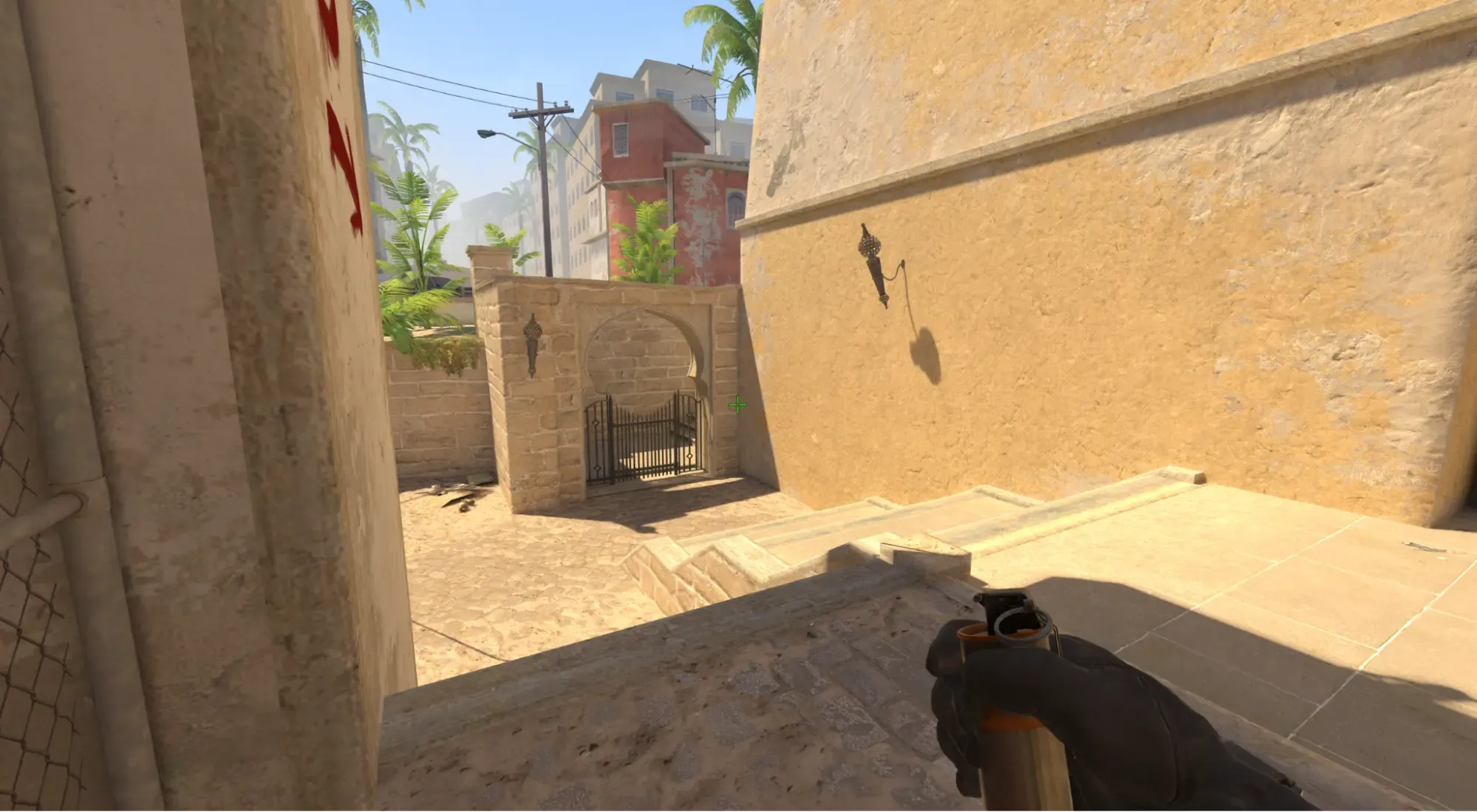 - И выполнить jumpthrow. Смок падает, закрывая видимость защитнику, который стоит на шорту