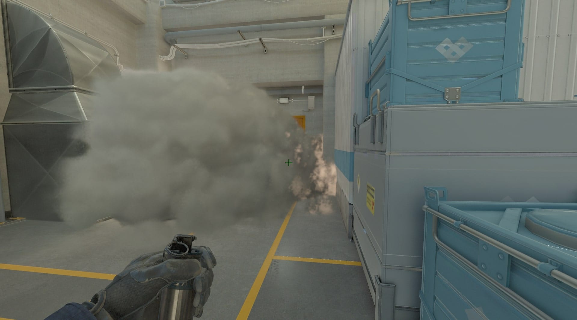 Также отлично подходит для защиты А сайта, особенно хорошо сочитается в паре с прошлым смоком на А, позволяя полностью закрыть выходы, для его броска вам нужно: