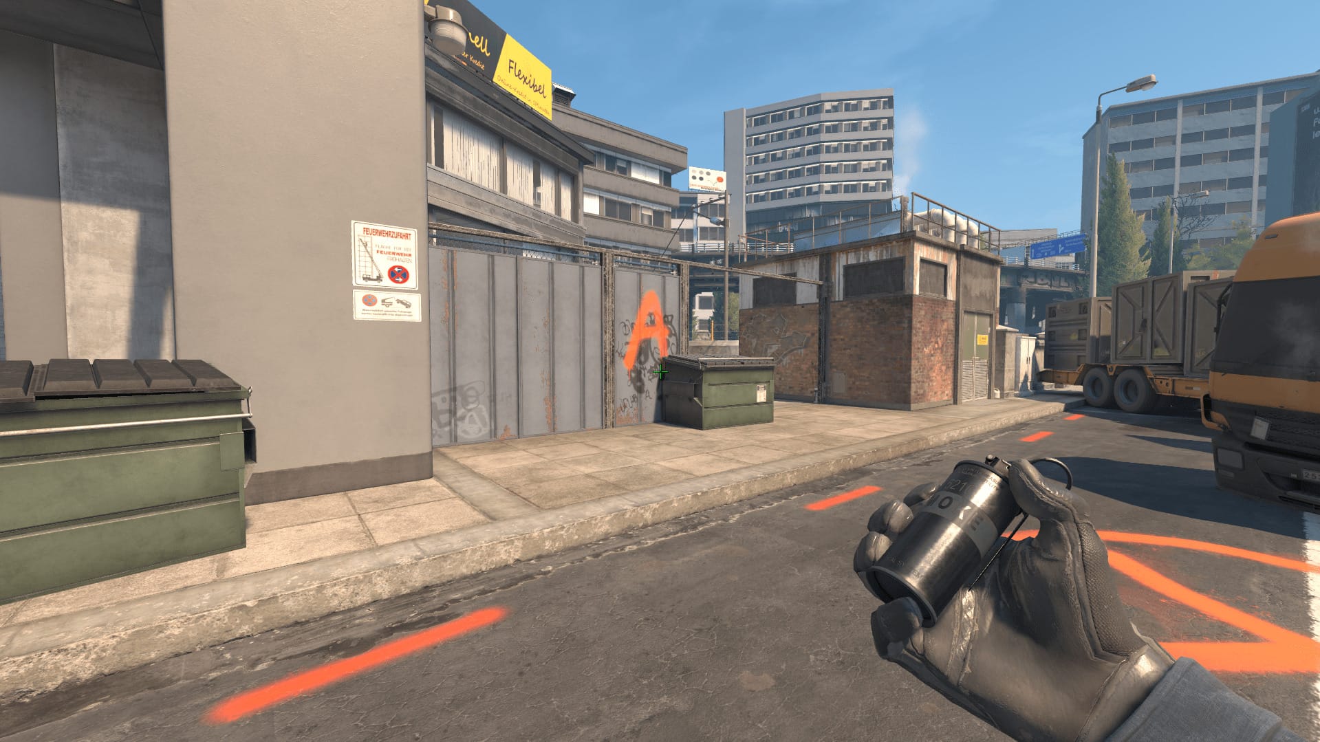 - Целимся на нижний край "пружинки", которая находится на электростолбе и кидаем дым