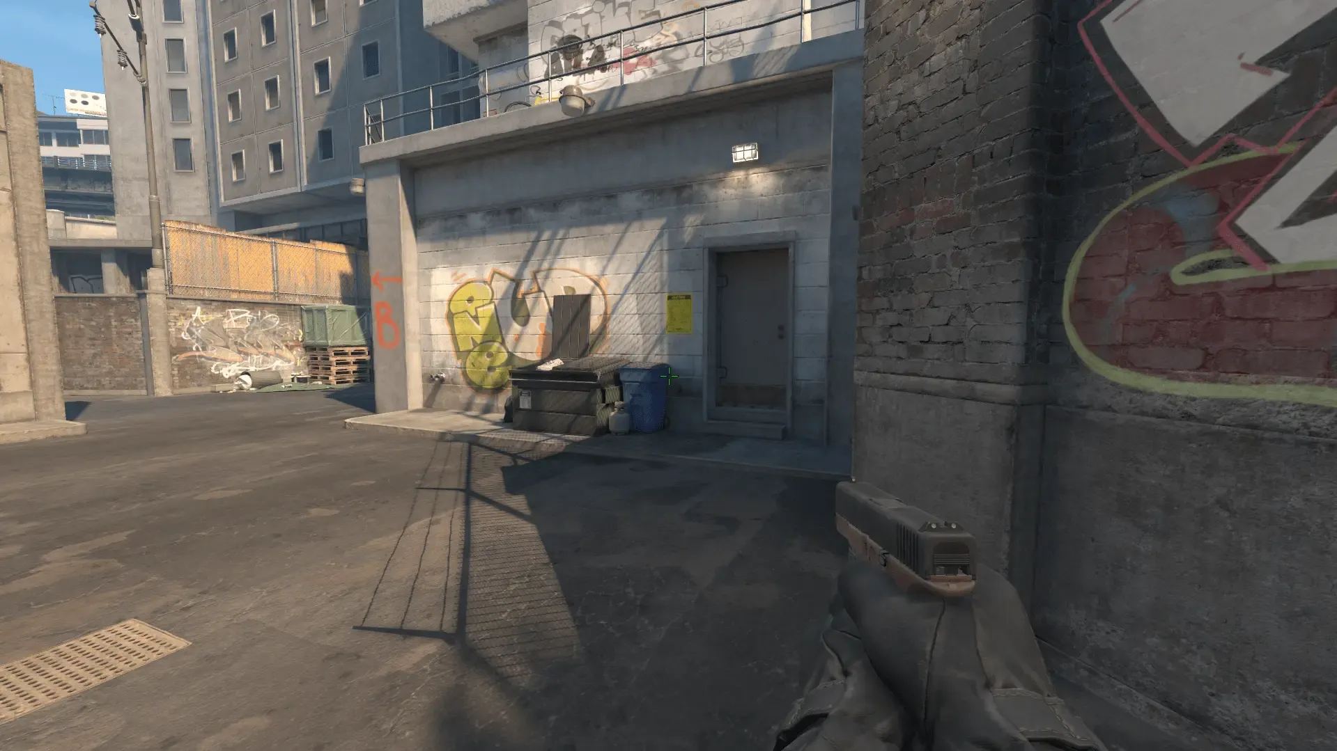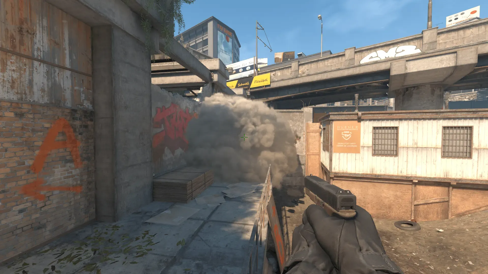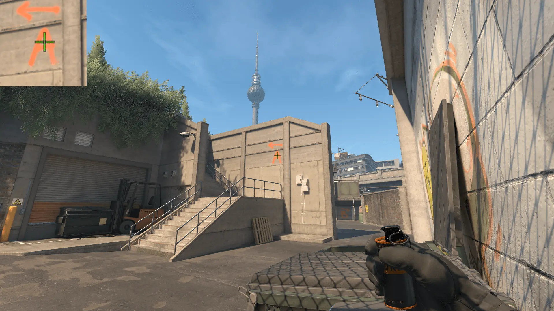 - Прицел поставьте в средину буквы A и киньте смоук с прыжком