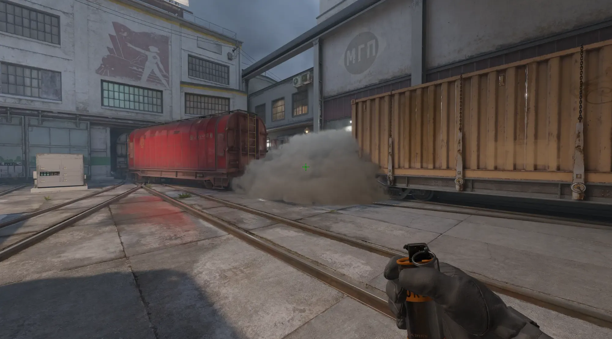 Смок падает между вагонами на пленту А. Бросается с угла на нуле. Не сложный в исполнении и очень эффективный со смоком в коннектор.