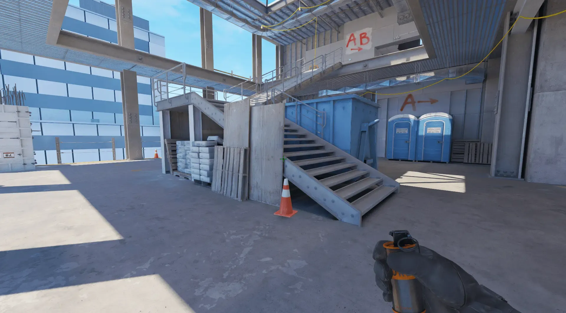 - Целимся в угол который показан на скриншоте и кидаем смок с jumpthrow