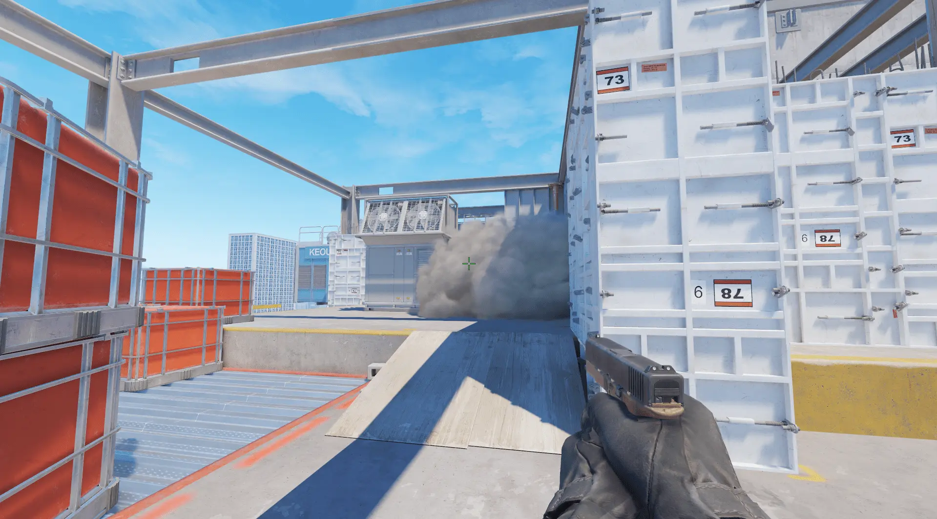 - Целимся в угол который показан на скриншоте и кидаем смок с jumpthrow